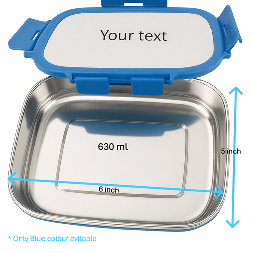 Customization Stainless Steel Lunch Box – 630 ml (Only Blue Colour Available)